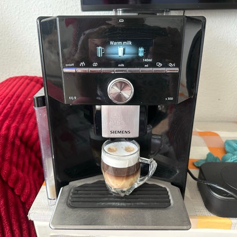Siemens espressomaskine i rustfrit stål med frontpanel i sort. Fuldt automatisk maskine med integreret kværn og betjeningspanel på fronten. Egnet til brygning af forskellige kaffetyper som espresso og kaffe med mælk. Maskinen har vandbeholder bagtil og udløb til kaffe på fronten. Velegnet til brug i køkkenet til daglig kaffebrygning.