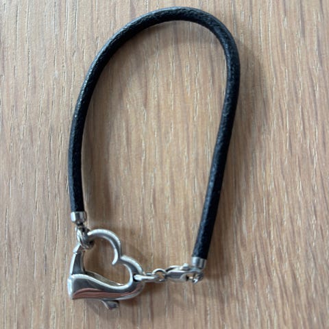 Brunt læder med hjerte lås i Sterling sølv