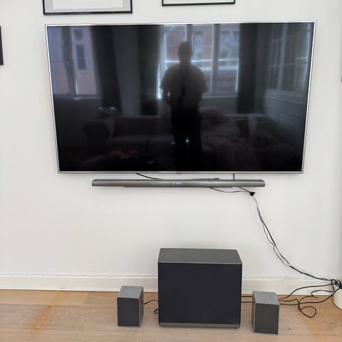 LG TV m. soundbar, subwoofer og baghøjttalere