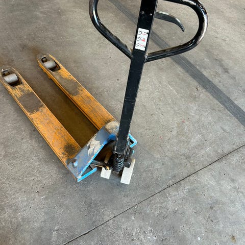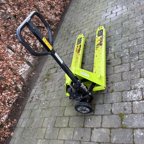 Palleløfter i grå farve. Egnet til håndtering og flytning af paller på lager, værksted eller i garage. Manuel løft via håndtag. Velegnet til transport af gods på EUR-paller og lignende paller på jævnt underlag.