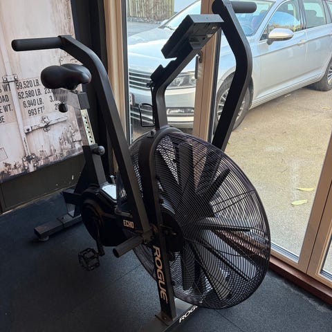 Assault Fitness assault bike/airbike med luftmodstand og computerdisplay. Cyklen har stort ventilatorhjul, som giver luftbaseret modstand, og bevægelige håndtag til træning af både over- og underkrop. Sædet er højdejusterbart. På styret sidder et elektronisk display med knapper til start/stop og programvalg samt visning af blandt andet tid, distance, kalorier og omdrejninger. Velegnet til indendørs konditionstræning og helkropstræning.