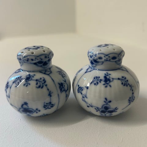 Royal Copenhagen blå musselmalet Salt og Peber Sæt.