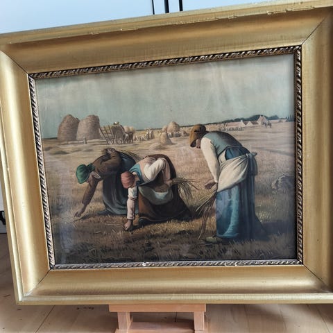 Første billede: 3 bondekvinder, der sanker efterladte kornaks på høstmarken.