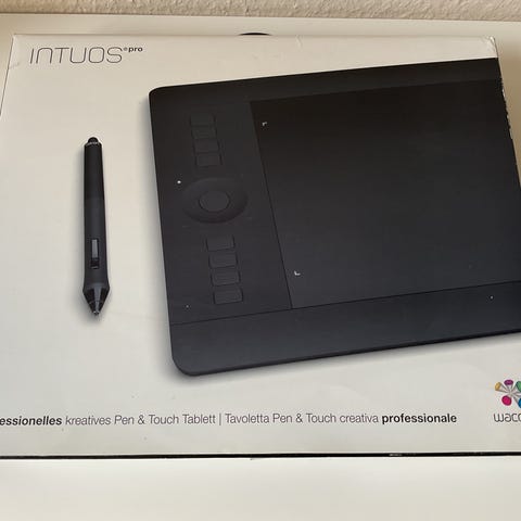 Wacom Intuos tegneplade med pen. Grafisk tegneplade til brug med computer, velegnet til digital tegning, billedredigering og anden kreativt arbejde. Enheden har flere funktionsknapper på overfladen. Pennen har trykfølsom spids og sideknapper til genveje. Passer til brugere, der har behov for præcis styring og håndskrift på skærm i forbindelse med grafisk arbejde eller generel computerbrug. Har ikke original kasse og vejledning. Nypris 800.
