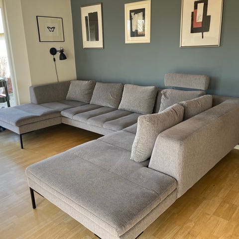 Størrelsen for sofaen er: længde 311 cm, højde 75 cm, bredde/dybde 220 cm. (Siddehøjde er 38 cm)