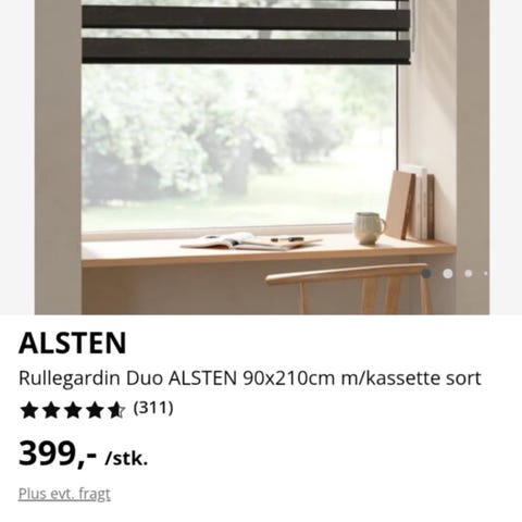 2 stk. ALSTEN Duo-rullegardiner (90x210 cm): Med kassette. Perfekt stand. (Nypris 399,- pr. stk.)