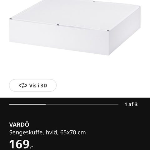 Hvidt låg i tekstil til Vardö sengeskuffe. Skruer medfølger.
