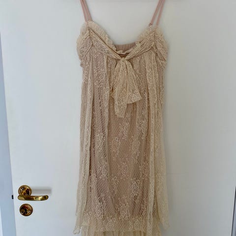 Jus de pom str. M/L tunika kjole i hvid med underkjole så den ikke er gennemsigtig, blonder og broderianglaise