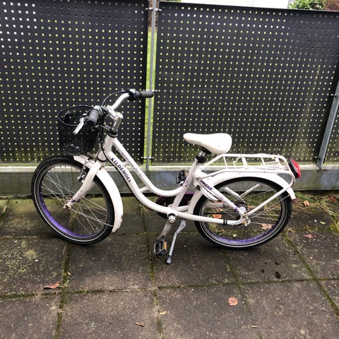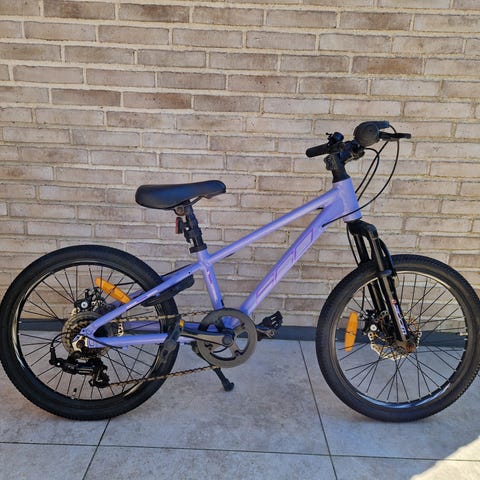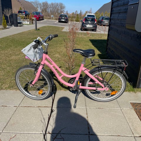 Børnecykel med 20” hjul i blå farve. Cyklen har lav indstigning, bagagebærer, kædeskærm, støtteben og kurv foran. Egnet til større børn, der passer en 24" cykelstørrelse.