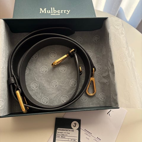 Mulberry armbånd med sløjfe i rød læder. Armbåndet har en metaldetalje med Mulberry-logo på sløjfen og justerbar lukning. Leveres i original æske med Mulberry-stofpose, som ses på billederne. Velegnet som modeaccessory til hverdags- eller festbrug.