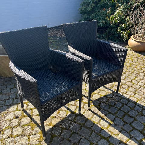 IKEA MAJBY havestol i naturfarvet flet. Stolen er udført i flettet materiale med armlæn og let buet høj ryg for støtte. Egner sig til brug i have, på terrasse eller altan. Klassisk kurvestolsdesign med åben fletning, der giver et let udtryk og mulighed for luftcirkulation, når man sidder i den. Sælger 4 stk. samlet.