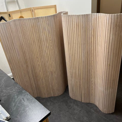 Reol: underdel h 74cm d 50cm overdel h 105 cm d 36 cm. Samlet længde 120cm