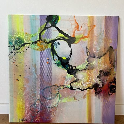 Rikke Heineke – Originalt Mixed Media Kunstværk (2002), 84×84 cm