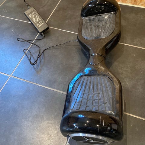 Brugt, men virker perfekt, dog medfølger oplader ikke. Ecotrys hoverboard i sort. El-løbehjul med to hjul og fodplader med mønster for bedre fodfæste. Indbygget batteri og opladerstik på siden. LED-indikatorlys på toppen viser strøm- og funktionsstatus. Velegnet til persontransport på jævnt underlag. Egnet til børn og voksne. Der MEDFØLGER IKKE OPLADER.