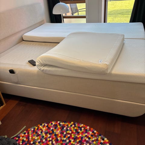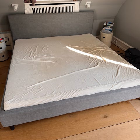 Tempur kontinental seng med masser af komfort og mange år endnu. Sengen består af to boxmadrasser, en springmadras og en topmadras med memoryskum. Medium hårdhed. Lamelbund. 180x200 cm. Ink. sengegavl. Lagner og rullemadras kan medfølge gratis. Sælges da vi ønsker en seng i 180x210 cm.