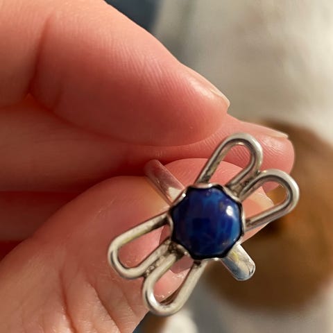 Sterling sølvring med facetslebne blå sten