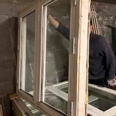 10 stk. Fortsatsvinduer. Enkelglas i træramme. Gode til drivhus eller højbede.