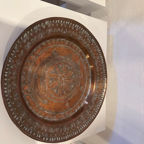 Andet, KOBBER FAD/PLATTE, MEGET FLOT DEKORERET KOBBERFAD .