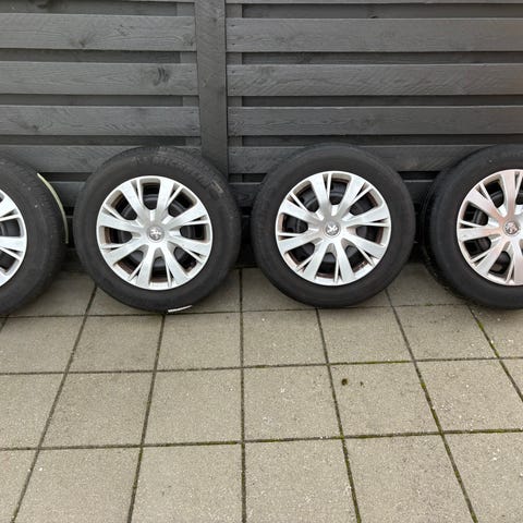 Originale Peugeot 208 fra 2012 til 2018 år stålfælge med gamle Bridgestone sommerdæk, ca 3mm mønster. Sæt pris 300kr.