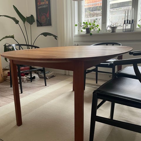 Shakerbord fra Brdr. Friis i massiv mahogni med folde tillægsplader i begge ender. Plader kan tager af og på.