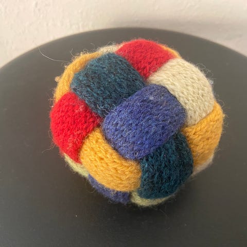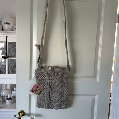 Englen Elvira strikket i silk mohair fra Copenhagen fibers, med træperle hoved.