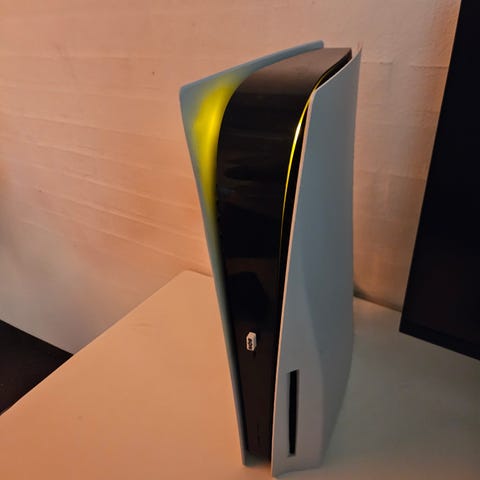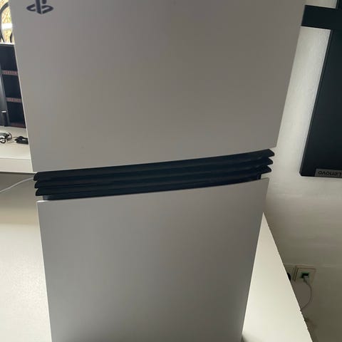 G-Story bærbar skærm til PS5 på 15,6" i sort og hvid. Skærmen er designet til at monteres direkte på en PlayStation 5-konsol og fungerer som integreret display. Enheden har indbyggede højttalere og betjeningsknapper på fronten. Velegnet til brug, hvor der ønskes en kompakt løsning med skærm og konsol samlet, f.eks. til transport eller steder med begrænset plads.