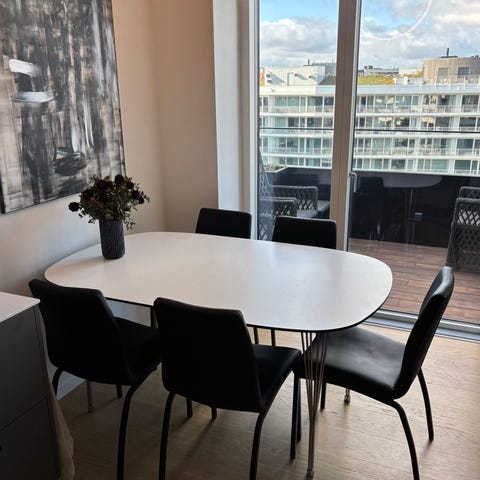 Vi sælger vores 4 spisebordsstole fra Ilva. De er købt i 2018 for 700 kr. stykket.