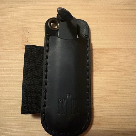 Helt ny læder etui i det blødeste italienske fuld grand sort læder . Håndlavet. Beregnet til Victorinox 84 mm. F.eks. cadet , bantan eller anden mindre lommekniv. Plads til lommelygte eller mindre kuglepen f.eks. Fischer bullet .FAST PRIS