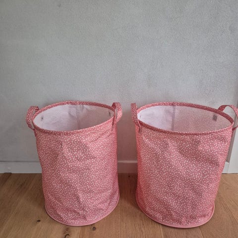 Til opbevaring af evt legetøj eller andet det er 3 små. H25 l 36 D 25. Stor. D 35 B 28 L 42. ET SÆT FOR 65. ALLE 6 FOR 150 KR