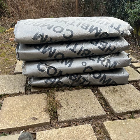 Har det meste af en 20 meter rulle fugtisoleringsmåtte tilbage fra Biltema. Bruges til beskytte ydermurens fundament mod indtrængende fugt. Tror der er 13-14 meter tilbage.