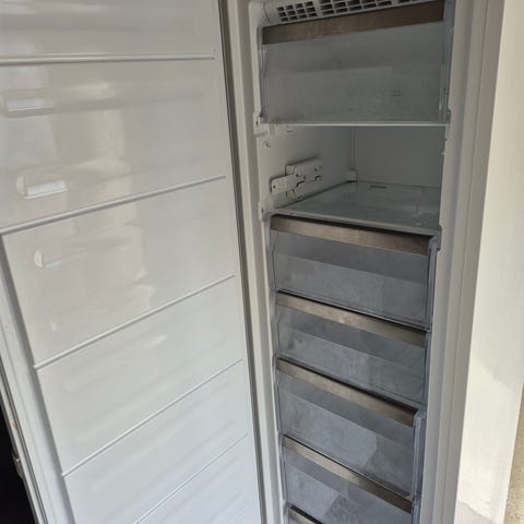 Kvalitetsmærket skab med indbygget Nofrost system - skal aldrig afrimmes. Det virker upåklageligt og det står helt skarpt og er ikke så gammel - ca 3år.
