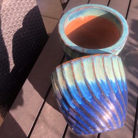 Blå keramiske krukker til udendørs brug