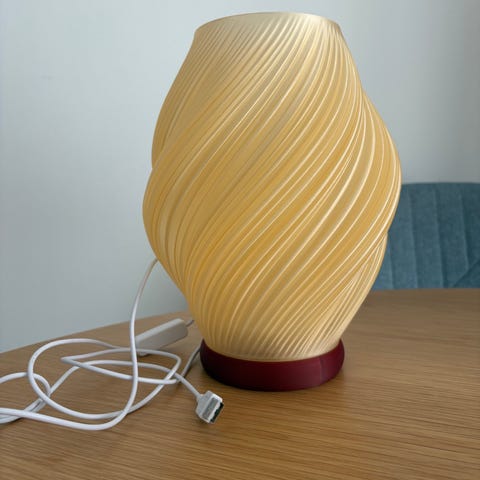 Selve lampen er i plast og håndtaget er i stormgrå aluminium.