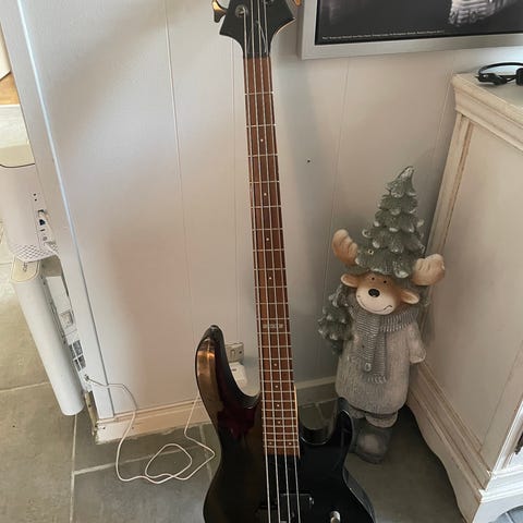 Cort B4FL el-bas med 4 strenge i natur finish. Fretless bas med gennemgående hals og trægribebræt. Udstyret med to bartoli-pickupper og aktiv elektronik med flere kontrolknapper til tone- og volumenjustering. Kroppen er i lyst træ med synlig årestruktur, og halsen er mørkere lamineret træ. Bagpå findes batterirum til den aktive elektronik. Velegnet til spillere, der ønsker en fretless el-bas med naturtræ-look og justerbare lydmuligheder. Bassen kan høres, men jeg har desværre kun en guitarforstærker til formålet.