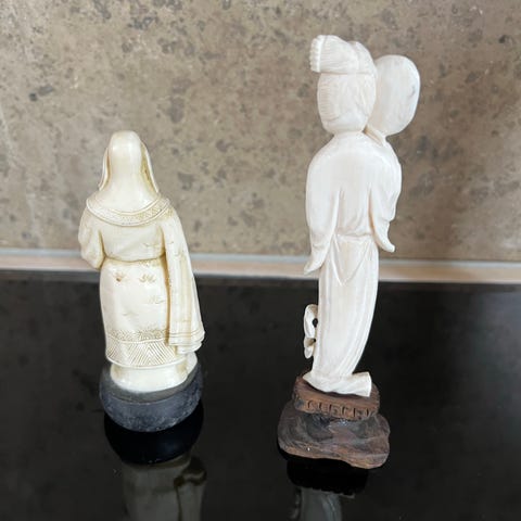 Dekorativ udskåret figur i ben/horn hvid