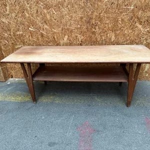 Mindre sofabord i teaktræ med hylde.