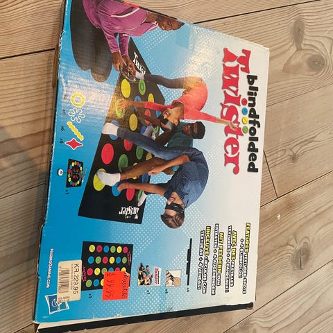 Hasbro Twister brætspil. Klassisk familiespil hvor spillerne placerer hænder og fødder på farvede felter på spillemåtten efter anvisningerne på drejeskiven. Velegnet til flere spillere fra ca. 6 år og opefter. Spillet indeholder typisk spillemåtte og drejeskive med farver og positioner.