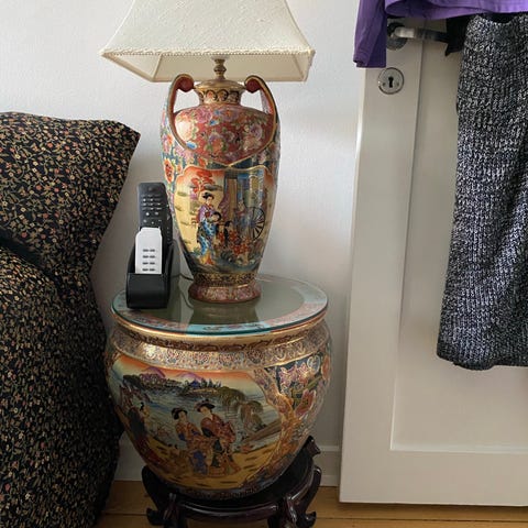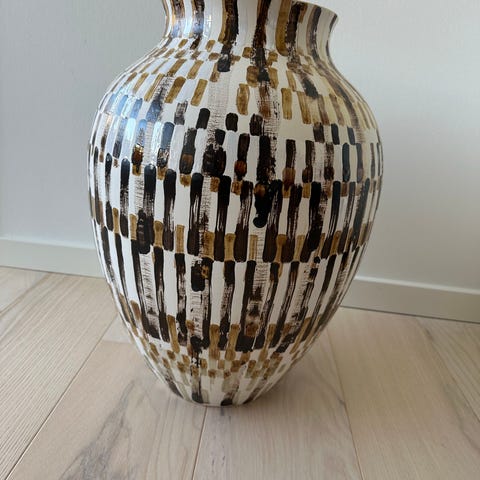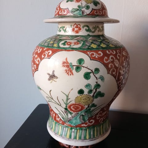 Wong Lee Porcelænsvase med metalhanke og dekoration