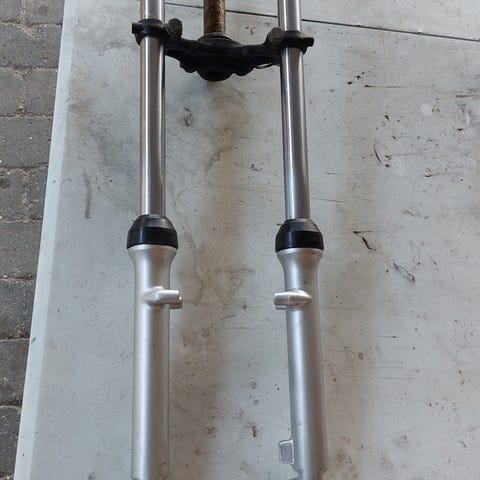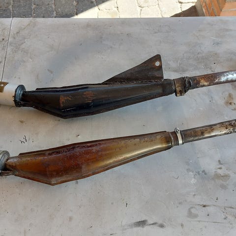Brugt - med lidt overladerust - men bør kunne poleres op eller males sort.
