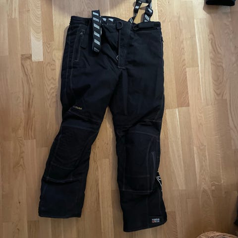 Rukka motorcykelhandsker str 12 i sort læder. Handskerne har forstærkede knoer og ekstra polstring på oversiden af hånden. Desværre har en mus spist lidt af læderet på oversiden, se billede.