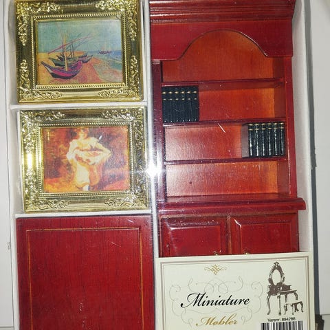 Der er en del dukkehus møbler, de sælges nu.