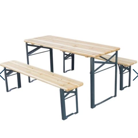 Børne picnicbord med integrerede bænke i brun træfinish. Bordet er udført i planker og er egnet til udendørs brug, f.eks. i have, på terrasse eller i gårdmiljø. Klassisk bord/bænkesæt-konstruktion med siddepladser på begge sider af bordpladen. Sætte