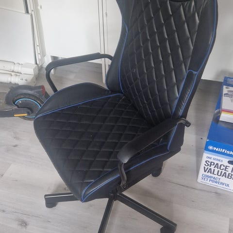 God robust gamerstol Har set en del timer, men stadig god. Bedre kvalitet end de billige samlesæt.