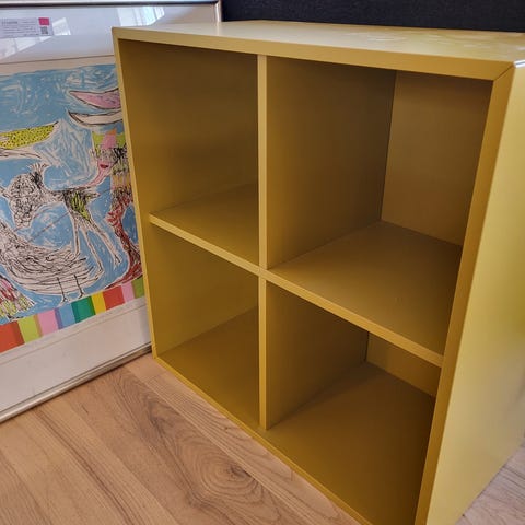 Fem IKEA EKET bogkasser monteret med ben. Den er lidt skrøbelig under transport men står fint. Har været brugt til bøger. B 176cm. H 52cm. D 35cm.