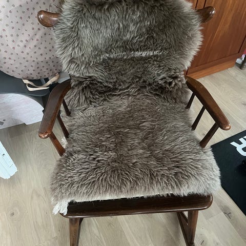 Smuk ældre gyngestol med en enkelt reparation (se sidste billede).