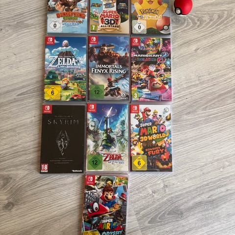 Nintendo Switch spil. Priserne står nedenfor ud for titlerne og prøver at markerer med solgt løbende