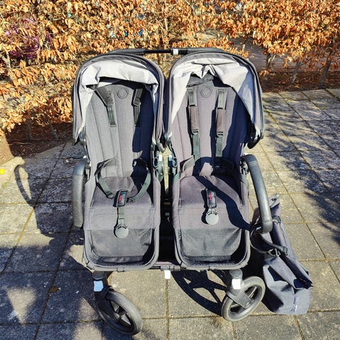 Super flot bugaboo donkey duo. Jeg skriver 3/5 fordi stellet, kurven, hjul og liftdelen er fra model 3 og resten er helt nyt/lige blevet pakket ud af kasserne og er model 5. Sidste foto er af de dele som er model 3. Resten er helt nyt. Dvs 2 nye rammer, 2 sæder, 2 fulde kalescher, 2 læderbøjler og 2 helt nye regnslag og 1 ny kørepose. Den kan bruges til 1 barn eller laves om til 2 børn, alle delene er med