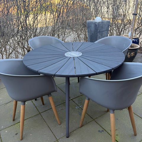 Bordet er 110 cm. i diameter og 74 cm. højt.