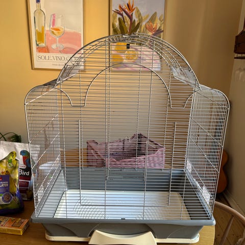Et stk fuglebur inkl pose med frø