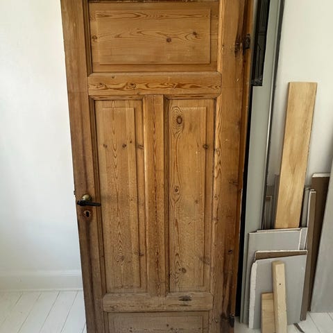 Indvendig gammel fyldningsdør.
